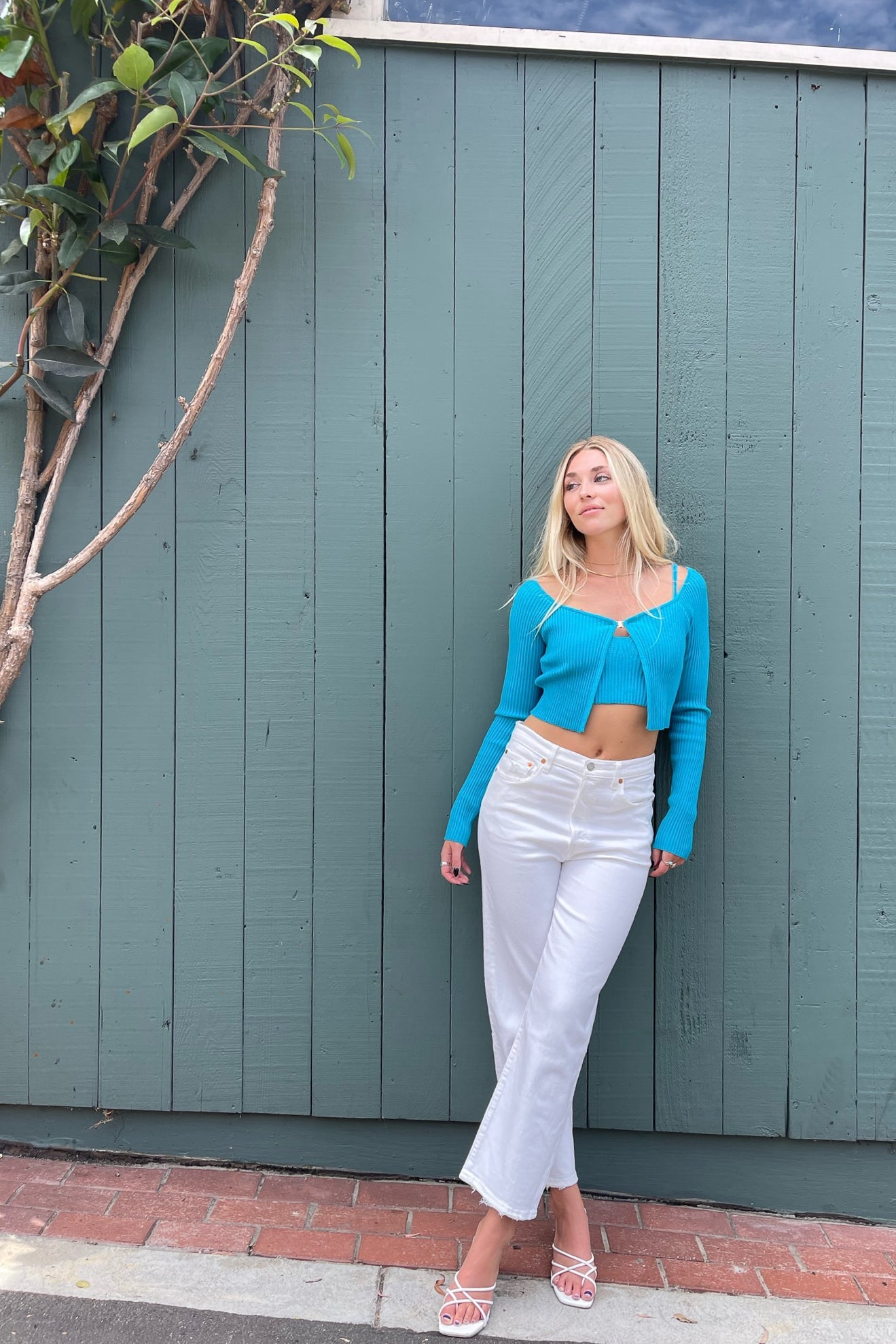 So gorgeous in the Marina Ribbed Cardigan! This soft ribbed cardigan is complete with a cropped design and a gold single clasp closure. Pair together with the matching !
